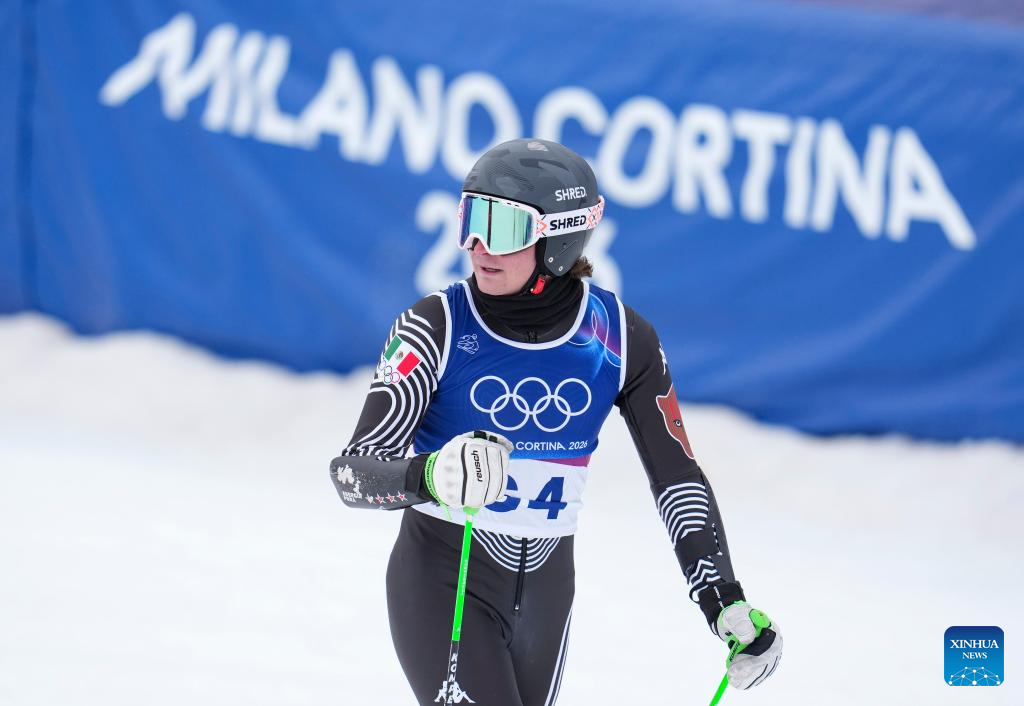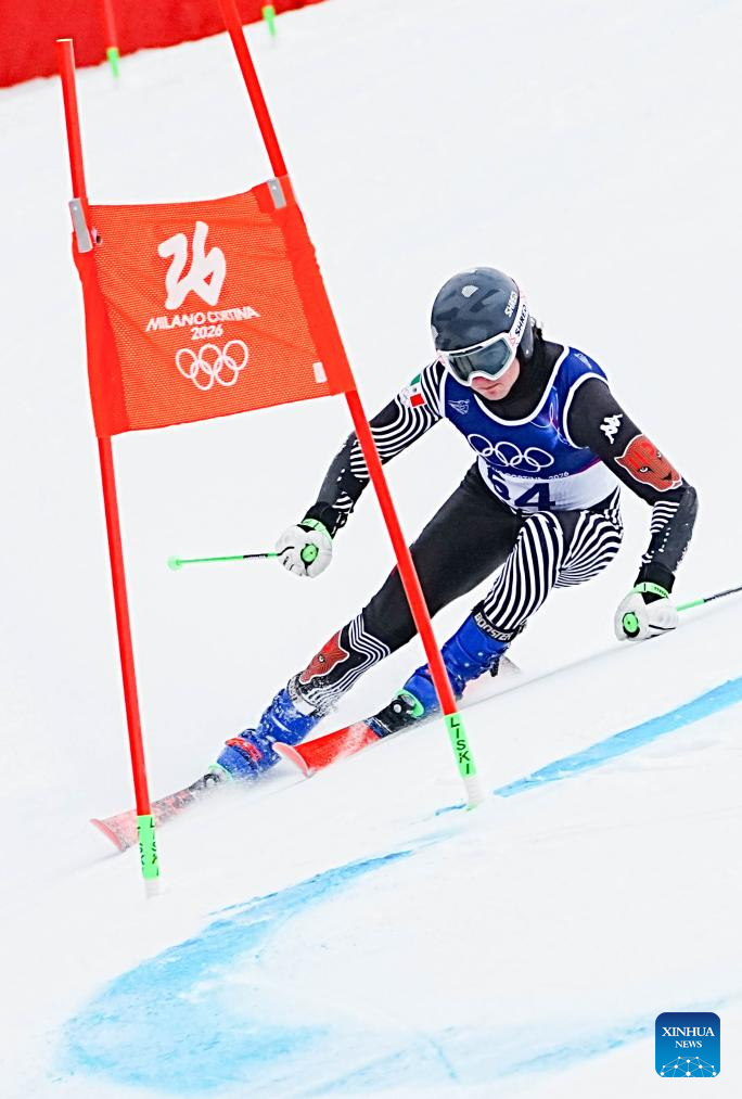 CORTINA D'AMPEZZO, 15 febrero, 2026 (Xinhua) -- Zhang Yuying, de China, compite durante la carrera 1 del eslalón gigante femenino de esquí alpino en los Juegos Olímpicos de Invierno Milán-Cortina 2026, en Cortina, Italia. (Xinhua/Zhang Chenlin)