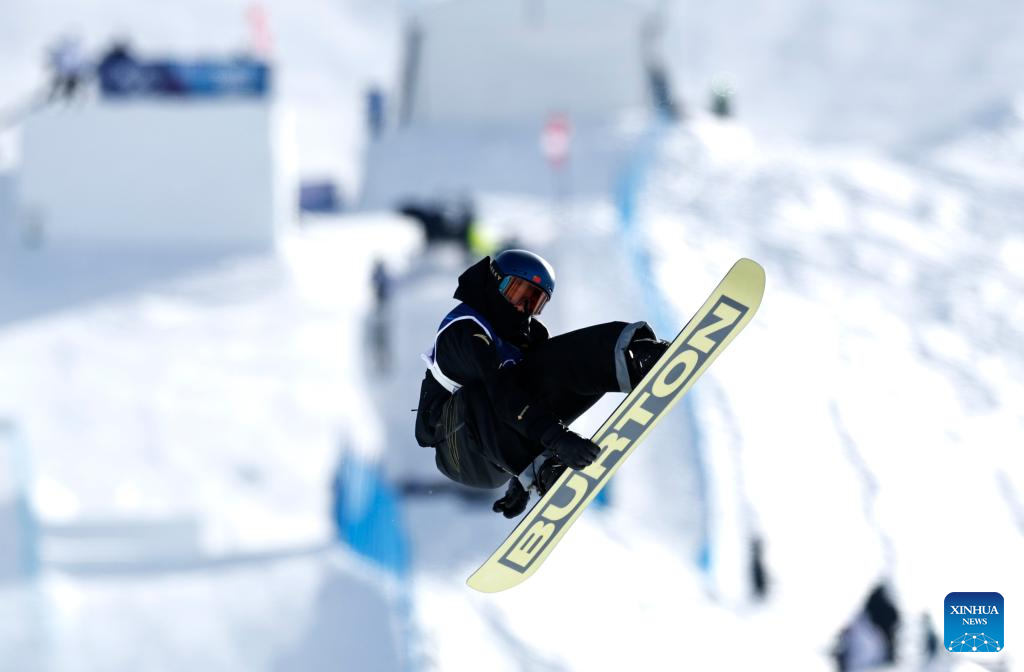LIVIGNO, 15 febrero, 2026 (Xinhua) -- Yang Wenlong, de China, compite durante la clasificación del slopestyle masculino de snowboard en los Juegos Olímpicos de Invierno Milán-Cortina 2026, en Livigno, Italia, el 15 de febrero de 2026. (Xinhua/Hu Chao)