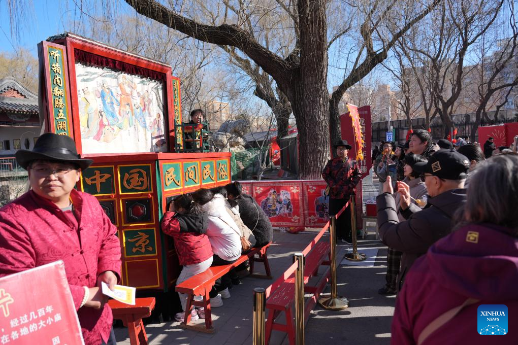 BEIJING, 17 febrero, 2026 (Xinhua) -- Personas observan una presentación folclórica en una feria del templo, en Beijing, capital de China, el 17 de febrero de 2026. La Fiesta de la Primavera de este año registró un aumento de visitantes deseosos de experimentar la gastronomía local, la rica historia y vibrantes presentaciones folclóricas. (Xinhua/Xie Han)