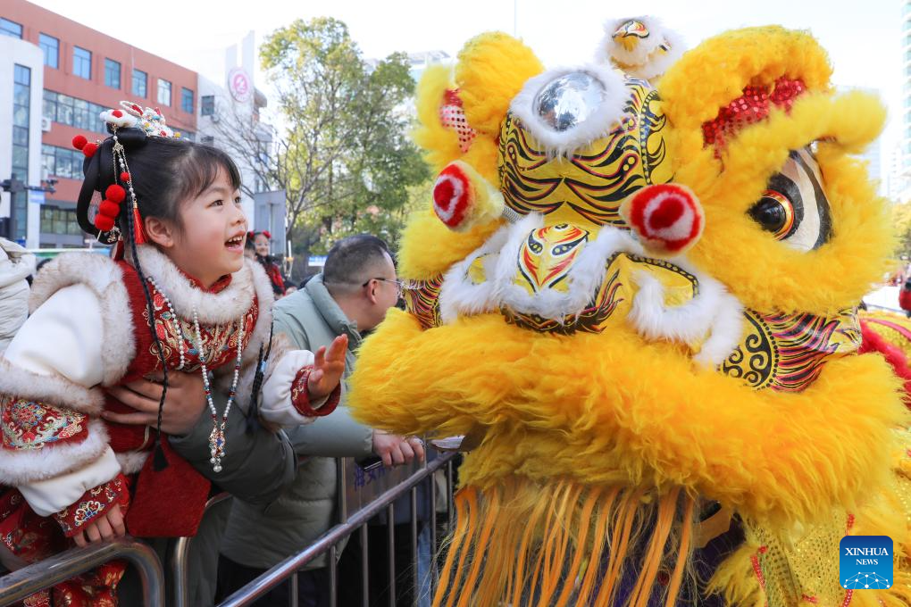 BEIJING, 17 febrero, 2026 (Xinhua) -- Una niña interactúa con bailarines de la danza del león, en Hai'an, en la provincia de Jiangsu, en el este de China, el 17 de febrero de 2026. La Fiesta de la Primavera de este año registró un aumento de visitantes deseosos de experimentar la gastronomía local, la rica historia y vibrantes presentaciones folclóricas. (Xinhua/Gu Binbin)