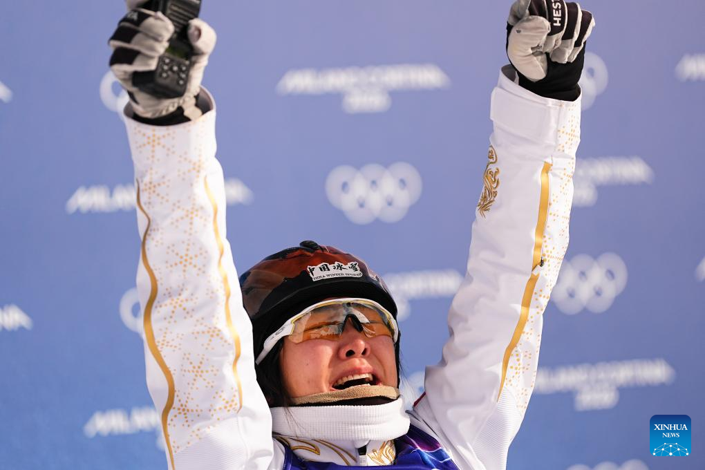 LIVIGNO, 18 febrero, 2026 (Xinhua) -- Xu Mengtao, de China, festeja al término de la final 2 de aerials femenino de esquí acrobático en los Juegos Olímpicos de Invierno Milán-Cortina 2026, en Livigno, Italia, el 18 de febrero de 2026. (Xinhua/Wu Huiwo)