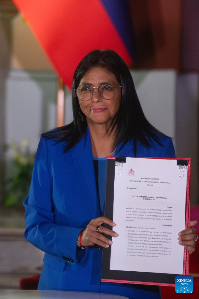 CARACAS, 19 feb (Xinhua) -- La presidenta encargada de Venezuela, Delcy Rodríguez, promulgó hoy jueves la recién aprobada Ley de Amnistía para la Convivencia Democrática que, a su juicio, significa "una nueva etapa" en la vida nacional del país sudamericano.