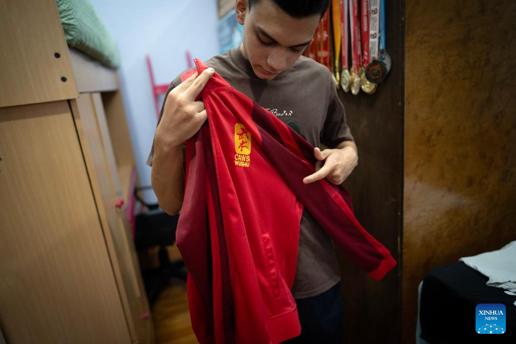 BUENOS AIRES, 18 febrero, 2026 (Xinhua) -- Imagen del 4 de febrero de 2026 de Marcos González, un joven de 14 años de edad y practicante de wushu, ordenando la ropa de entrenamiento en su habitación, en la ciudad de Buenos Aires, capital de Argentina. La milenaria cultura china y sus múltiples manifestaciones, como la Fiesta de la Primavera, el arte, la música, la danza y el deporte marcial, atrae y enamora a los jóvenes de Argentina, que se suman con entusiasmo, respeto y admiración a la práctica de distintas disciplinas, costumbres y celebraciones originarias del país asiático. (Xinhua/Martín Zabala)