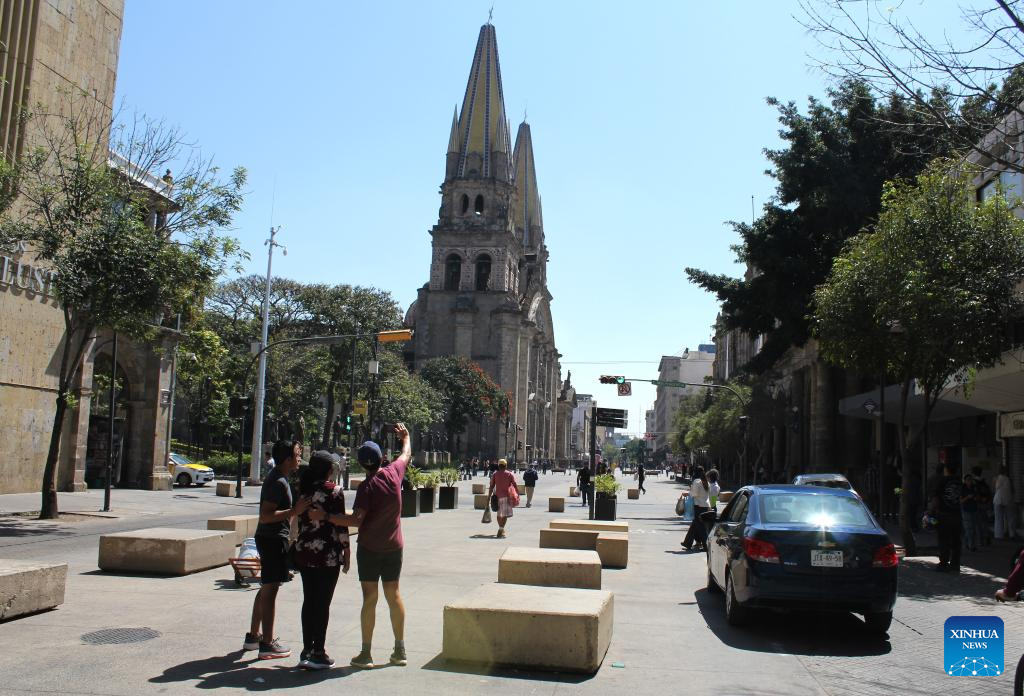 Personas se toman una fotografía frente a la Catedral Metropolitana de Guadalajara, en la ciudad de Guadalajara, capital del estado de Jalisco, México, el 24 de febrero de 2026. La presidenta mexicana, Claudia Sheinbaum, aseguró el martes que México ofrece "todas las garantías" para que se realice la Copa Mundial de Fútbol FIFA 2026, cuya etapa preliminar se jugará en las ciudades de México, Monterrey y Guadalajara, a partir de junio próximo. (Xinhua/Str)
