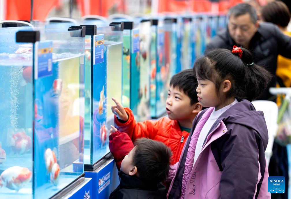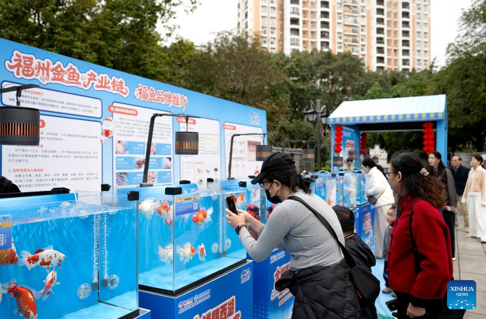 FUZHOU, 25 febrero, 2026 (Xinhua) -- Personas observan peces dorados en un parque, en Fuzhou, en la provincia de Fujian, en el sureste de China, el 25 de febrero de 2026. Las habilidades de cría de peces dorados de Fuzhou, un patrimonio cultural inmaterial provincial de Fujian, se han transmitido de generación en generación, lo que le ha otorgado fama mundial a esta variedad de peces dorados. (Xinhua/Wei Peiquan)