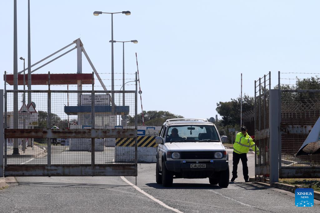 Un vehículo se retira de la Real Fuerza Aérea, en Akrotiri, Chipre, el 2 de marzo de 2026. La base aérea británica en Akrotiri, costa sur de Chipre, fue golpeada por un dron a primera hora del lunes, informaron las autoridades a cargo de esta instalación y el Gobierno chipriota. (Xinhua/George Christophorou)