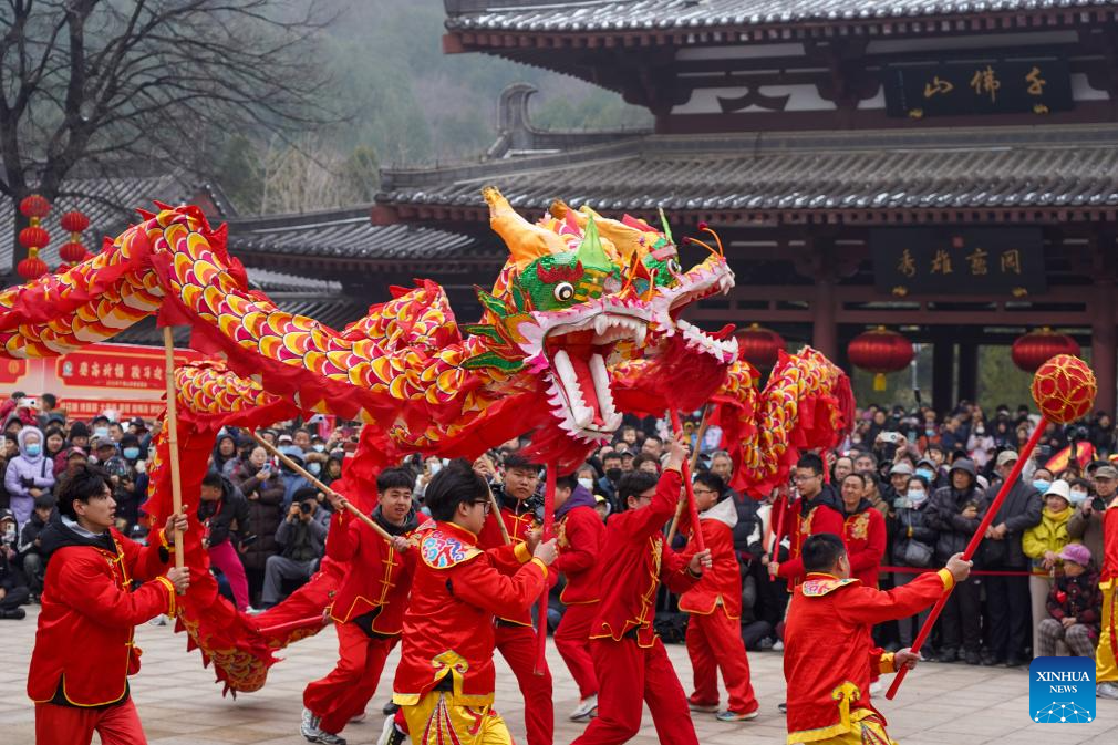 BEIJING, 3 marzo, 2026 (Xinhua) -- Artistas realizan la danza del dragón en celebración del Festival de las Linternas, en Jinan, en la provincia de Shandong, en el este de China, el 3 de marzo de 2026. En toda China se llevaron a cabo una variedad de actividades vibrantes para celebrar el Festival de las Linternas, que cae el decimoquinto día del primer mes del calendario lunar chino, o el 3 de marzo de este año. (Xinhua/Zhu Zheng)