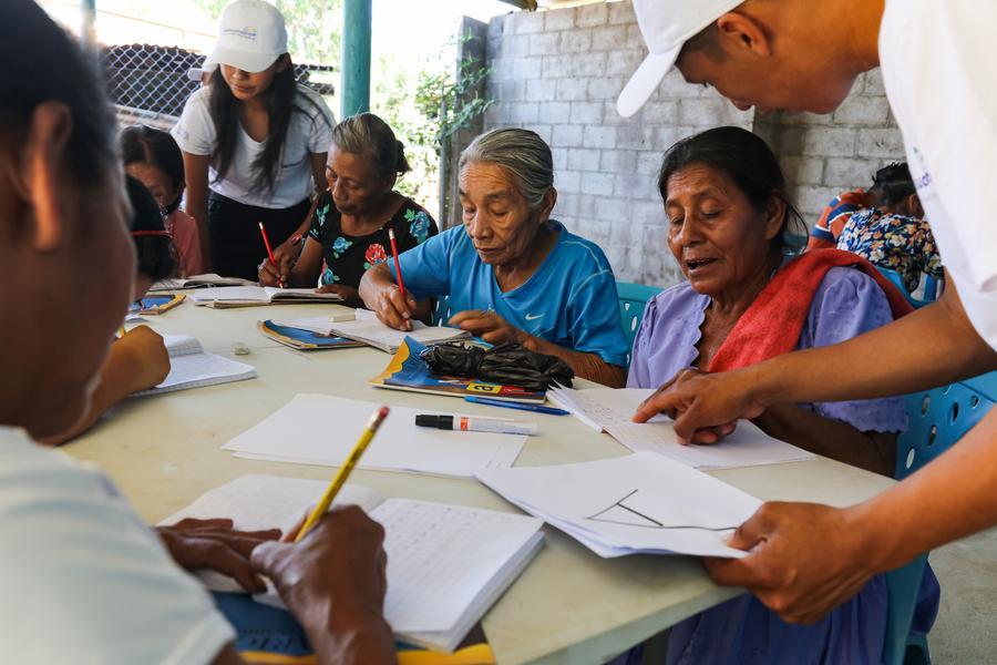 Los participantes en estos talleres comunitarios avanzan con paciencia hasta poder leer rótulos o ayudar a sus nietos con tareas.