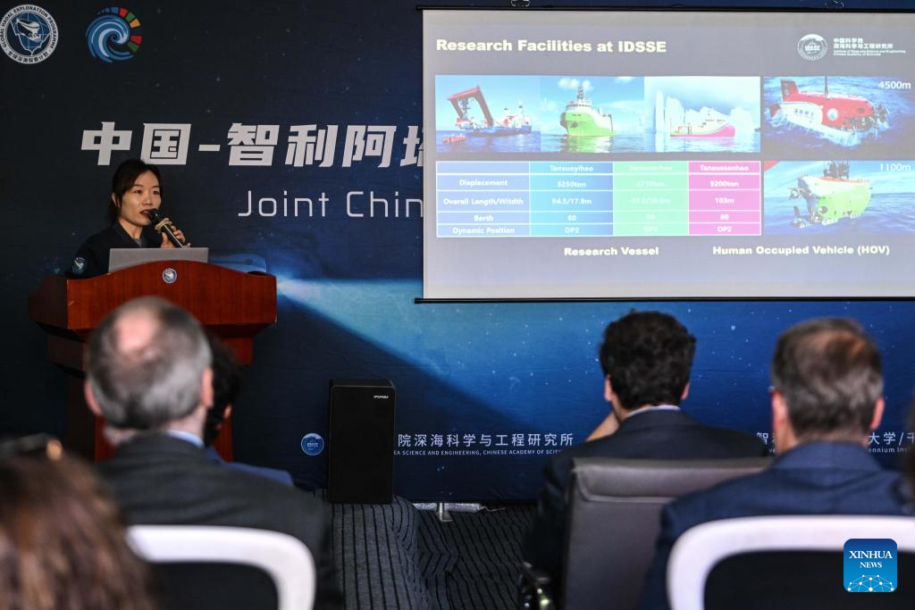VALPARAÍSO, Chile, 6 mar (Xinhua) -- La comunidad científica china y chilena compartió el jueves el hallazgo de posibles nuevas especies submarinas y vestigios de fuertes terremotos, durante la primera misión con exploradores directos a la Fosa de Atacama, a 8.000 metros de profundidad, frente a las costas chilenas.