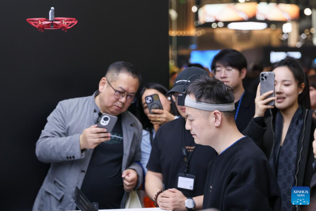 SHANGHAI, 12 marzo, 2026 (Xinhua) -- Un trabajador muestra la operación de un dron con ondas cerebrales durante la Exposición Mundial de Electrodomésticos y Electrónica 2026 (AWE2026, por sus siglas en inglés), en Shanghai, en el este de China, el 12 de marzo de 2026. La AWE2026 comenzó en Shanghai el jueves. Más de 1.200 empresas de todo el mundo se reunieron en la exposición para presentar sus últimas innovaciones. (Xinhua/Wang Xiang)