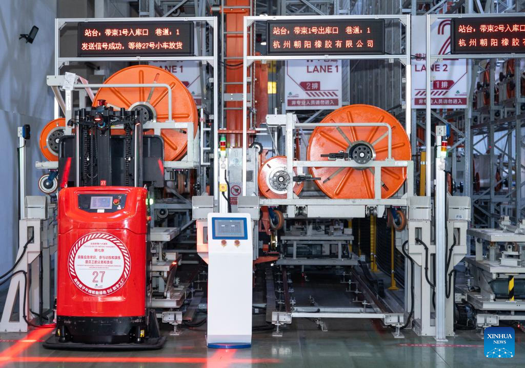 HANGZHOU, 20 marzo, 2026 (Xinhua) -- Imagen de archivo sin fechar de un AGV (Vehículo de Guiado Automático) transportando materiales en un almacén de Zhongce Rubber Group, en Hangzhou, en la provincia de Zhejiang, en el este de China. En Zhejiang, una de las potencias manufactureras de China, la inteligencia artificial (IA) se está convirtiendo en una fuerza transformadora que influye en el funcionamiento de todo el sistema de fabricación, desde el diseño de productos y la fabricación inteligentes hasta la toma de decisiones a nivel corporativo. (Xinhua)