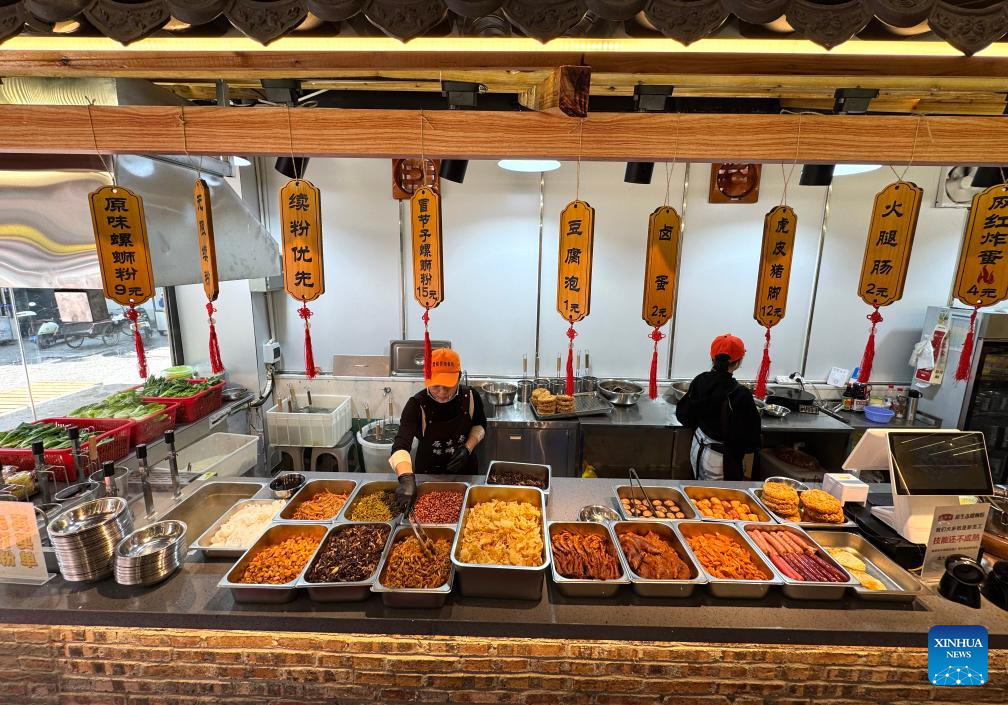 NANNING, 24 marzo, 2026 (Xinhua) -- Imagen del 10 de marzo de 2026 de turistas comprando Luosifen en una tienda especializada, en la ciudad de Liuzhou, en la región autónoma de la etnia zhuang de Guangxi, en el sur de China. Conocido por su sabor único y rico, el Luosifen, un plato tradicional chino de fideos de arroz de Liuzhou, ha ganado gran popularidad. (Xinhua/Huang Xiaobang)