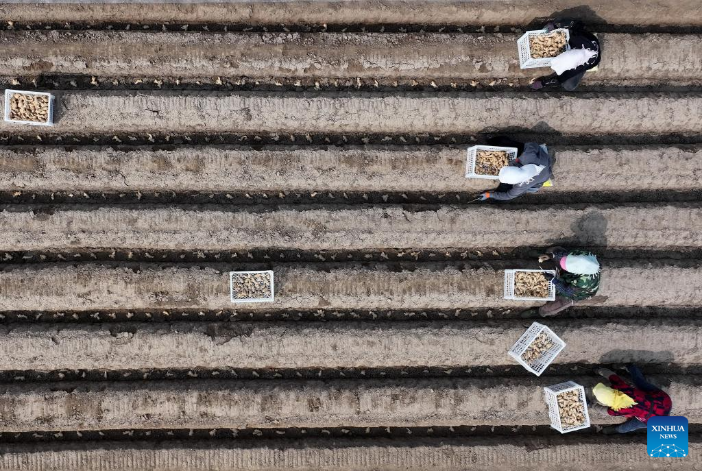 TANGSHAN, 26 marzo, 2026 (Xinhua) -- Agricultores plantan jengibre en los campos, en el poblado de Daxinzhuang del distrito de Fengnan, en Tangshan, en la provincia de Hebei, en el norte de China, el 26 de marzo de 2026. La agricultura de primavera está en pleno apogeo en Fengnan a medida que el clima se calienta. (Xinhua/Yang Shiyao)
