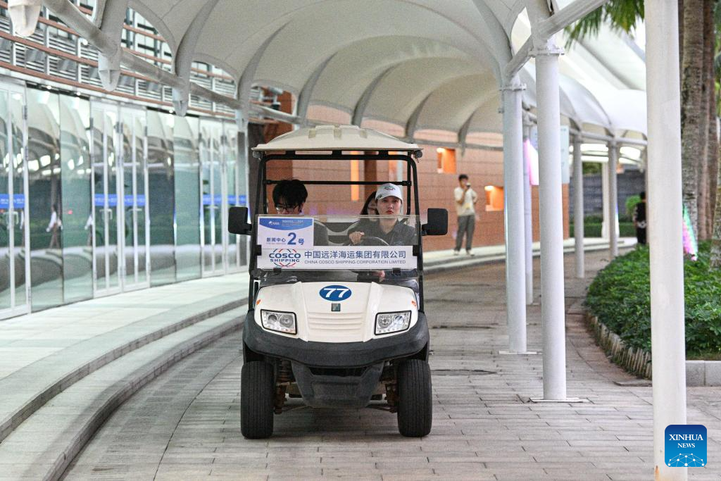 BOAO, 27 marzo, 2026 (Xinhua) -- Imagen del 26 de marzo de 2026 de una trabajadora conduciendo un vehículo de nueva energía para transportar a los periodistas en el centro de medios de comunicación de la Conferencia Anual 2026 del Foro de Boao para Asia (FBA), en Boao, en la provincia de Hainan, en el sur de China. Desde que se estableció el FBA hace 25 años, el concepto de operaciones verdes ha sido un principio fundamental de sus conferencias anuales. (Xinhua/Pu Xiaoxu)