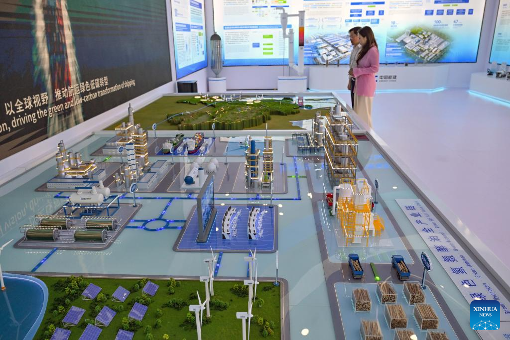 BOAO, 27 marzo, 2026 (Xinhua) -- Imagen del 25 de marzo de 2026 de una maqueta de toda la cadena industrial del hidrógeno verde, el amoníaco, el metanol y el petróleo exhibida en el pabellón de China Energy Engineering Group Co., Ltd., en Boao, en la provincia de Hainan, en el sur de China. Desde que se estableció el Foro de Boao para Asia (FBA) hace 25 años, el concepto de operaciones verdes ha sido un principio fundamental de sus conferencias anuales. (Xinhua/Guo Cheng)