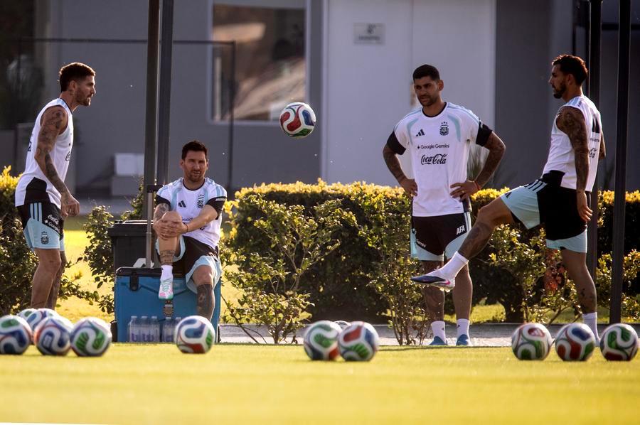 El plantel conducido por Lionel Scaloni completó la práctica en el predio Lionel Messi, de la Asociación del Fútbol Argentino (AFA), en Ezeiza (periferia sur de Buenos Aires).