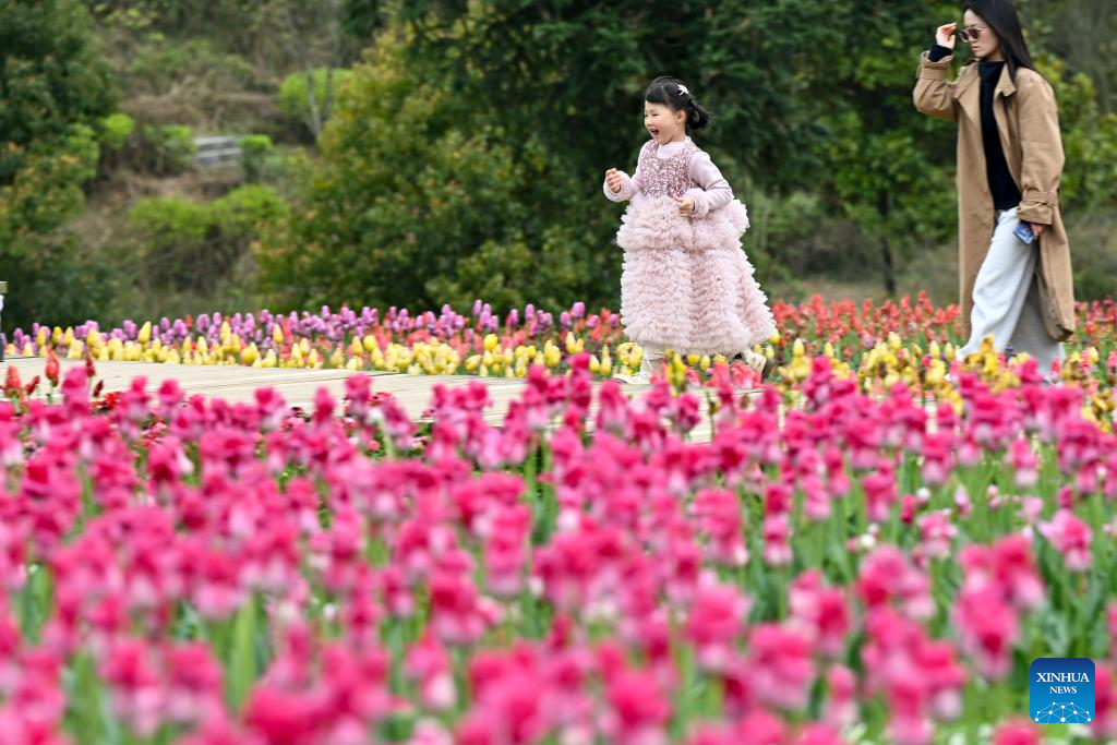 BEIJING, 31 marzo, 2026 (Xinhua) -- Imagen del 29 de marzo de 2026 de turistas disfrutando de la primavera entre las flores, en Guiyang, en la provincia de Guizhou, en el suroeste de China. (Xinhua/Yuan Fuhong)