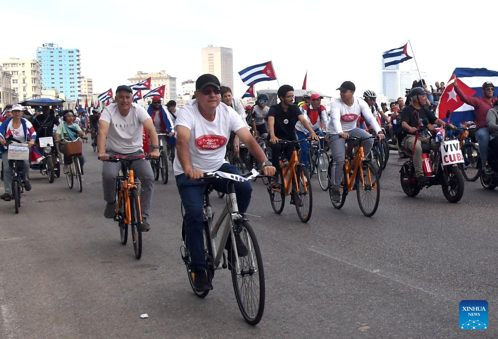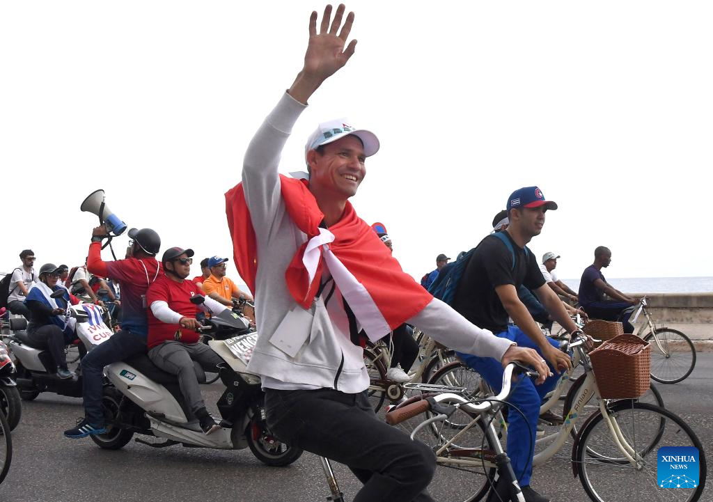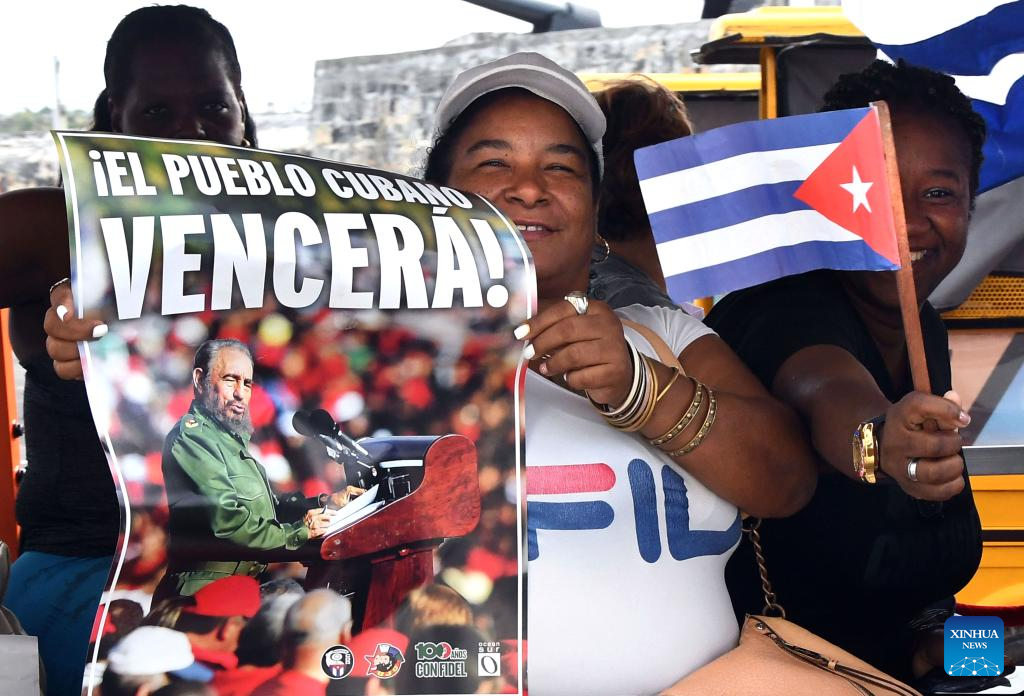 LA HABANA, 2 abr (Xinhua) -- Cientos de jóvenes y pioneros cubanos recorrieron este jueves el Malecón de La Habana, en la capital del país, en la Parada Juvenil Antiimperialista "Aquí, con Fidel", una movilización sobre ruedas que combinó el homenaje al líder político Fidel Castro, en el centenario de su nacimiento, con el rechazo al bloqueo que impone Estados Unidos a la isla.