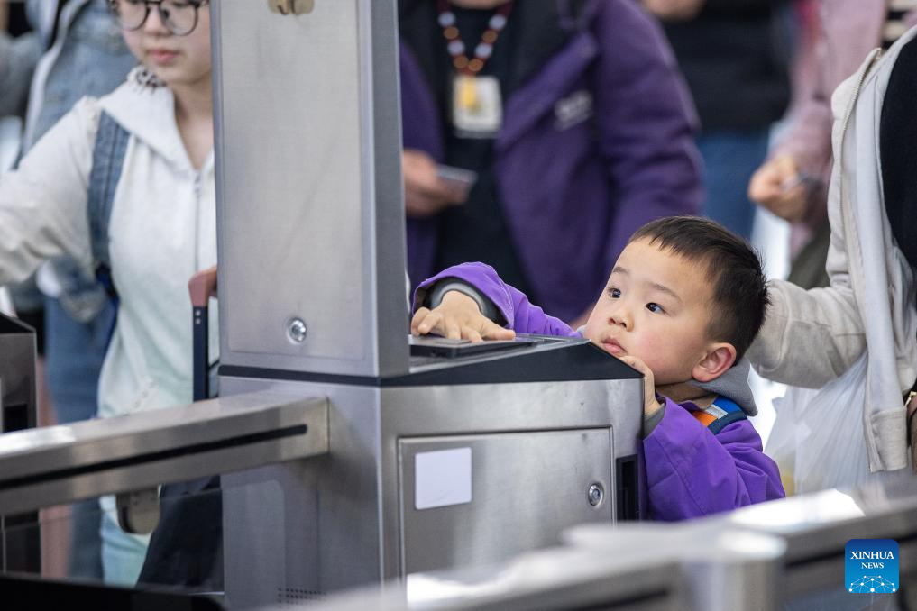 BEIJING, 3 abril, 2026 (Xinhua) -- Un niño realiza el registro en la Estación del Ferrocarril de Huzhou, en Huzhou, en la provincia de Zhejiang, en el este de China, el 3 de abril de 2026. Se prevé que entre el viernes y el próximo martes, durante la temporada alta con motivo del feriado del Festival Qingming, se registren en China 90,5 millones de viajes de pasajeros en tren, según el Grupo Estatal de Ferrocarriles de China (China State Railway Group Co., Ltd.). De acuerdo con el operador ferroviario nacional, se espera un promedio diario de 18,1 millones de desplazamientos a lo largo de los cinco días de este período viajero, en tanto que el sábado se alcanzaría el pico de ellos, con un total de 21,2 millones para la jornada. (Xinhua/Yi Fan)