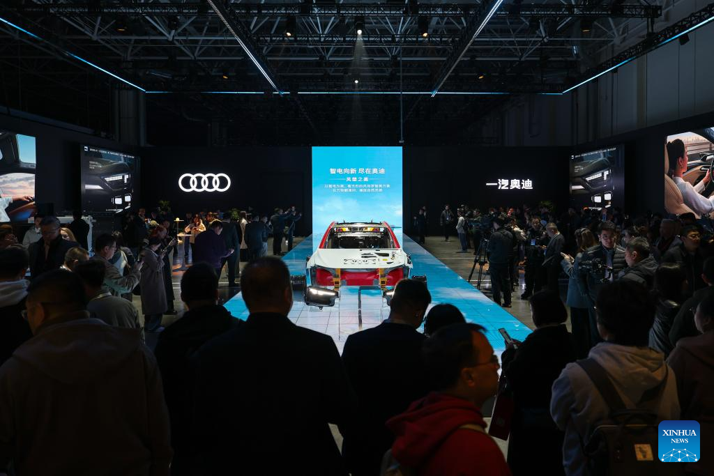 CHANGCHUN, 10 abril, 2026 (Xinhua) -- Invitados aprenden sobre las nuevas características durante un evento de lanzamiento para el A6L e-tron, un vehículo eléctrico de batería, marcando su debut en el mercado chino en Audi FAW NEV Co., Ltd., en Changchun, en la provincia de Jilin, en el noreste de China, el 10 de abril de 2026. (Xinhua/Xu Chang)