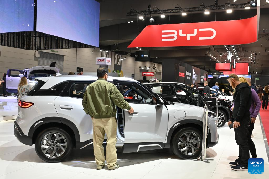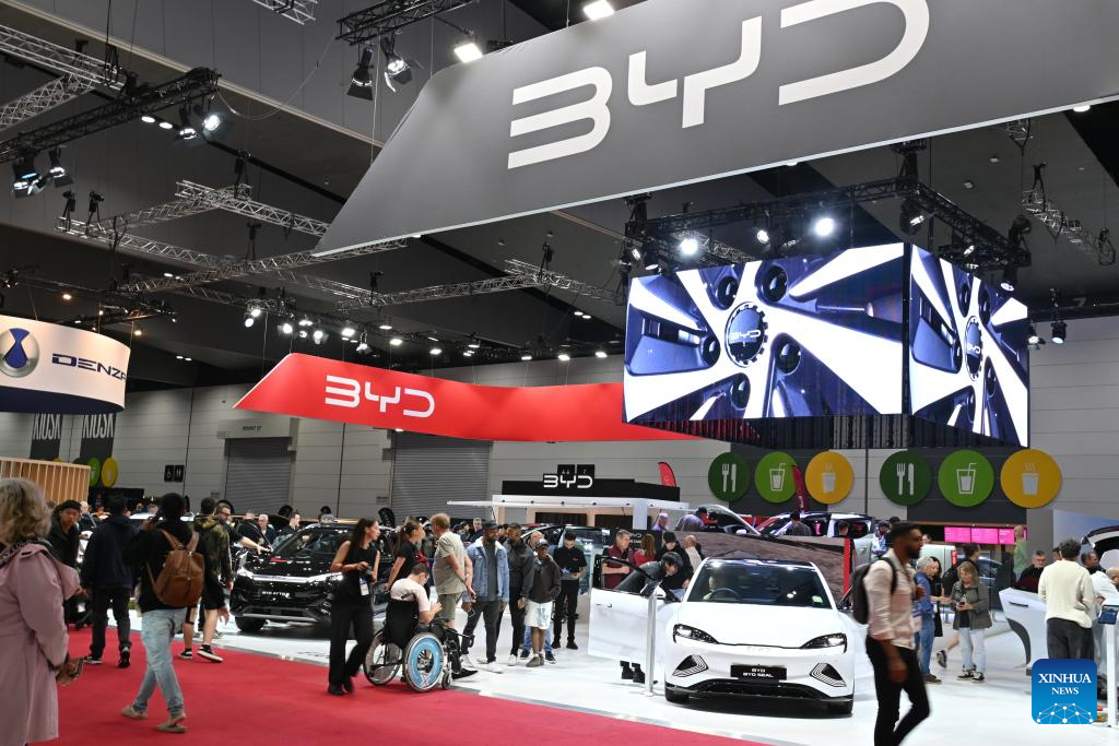 MELBOURNE, 12 abril, 2026 (Xinhua) -- Imagen del 10 de abril de 2026 de personas visitando el estand de BYD durante el Salón del Automóvil de Melbourne 2026, en Melbourne, Australia. Las marcas chinas representaron casi la mitad de los fabricantes de automóviles que expusieron en el salón y la mayoría exhibió nuevos modelos energéticos que iban desde vehículos compactos y SUV de tamaño mediano hasta grandes camionetas, y ofreció una amplia gama de opciones híbridas, híbridas enchufables y eléctricas de batería. (Xinhua/Xu Haijing)