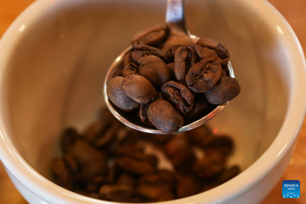 SONSONATE, 13 abril, 2026 (Xinhua) -- Imagen del 29 de marzo de 2026 de granos de café tostados vistos, durante una cata y muestra de grano de café en el beneficio "Los Naranjos", en la municipalidad de Juayúa, en el departamento de Sonsonate, El Salvador. El salvadoreño, Hebert Vásquez, y su esposa, la empresaria china, Tong Taohui, han construido en los últimos años un puente comercial que ahora da un nuevo salto: tras posicionar el café salvadoreño en el mercado chino han creado una empresa para introducir tecnología china especializada en la industria cafetalera y proyectarse hacia Centroamérica. (Xinhua/Alexander Peña)
