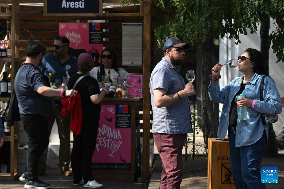 SANTIAGO, 13 abr (Xinhua) -- Chile hizo honor a su cultura vitivinícola con la celebración de Vendimia Fest 2026, un festival gastronómico que convocó a miles de personas y expositores de 50 viñas nacionales, en uno de los barrios más turísticos de Santiago, la capital.