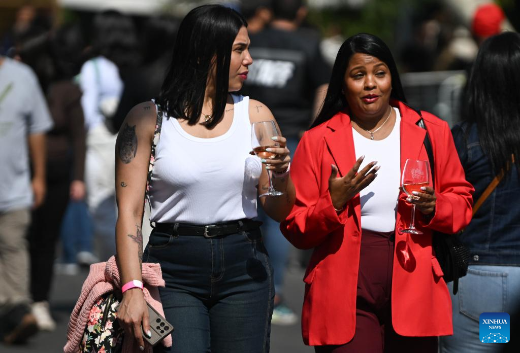 SANTIAGO, 13 abril, 2026 (Xinhua) -- Imagen del 11 de abril de 2026 de una persona asistiendo al evento Vendimia Fest 2026, en Santiago, capital de Chile. Chile hizo honor a su cultura vitivinícola con la celebración de Vendimia Fest 2026, un festival gastronómico que convocó a miles de personas y expositores de 50 viñas nacionales, en uno de los barrios más turísticos de Santiago, la capital. (Xinhua/Jorge Villegas)