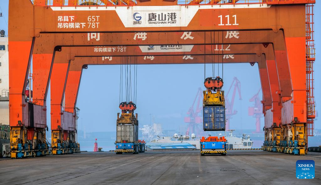 TANGSHAN, 18 abril, 2026 (Xinhua) -- Imagen del 17 de abril de 2026 de una terminal de contenedores del área de Jingtang del puerto de Tangshan, en Tangshan, en la provincia de Hebei, en el norte de China. De acuerdo a las autoridades, el volumen de carga del puerto de Tangshan alcanzó los 215,48 millones de toneladas en el primer trimestre de 2026, lo que representa un aumento interanual del 3,67 por ciento. (Xinhua/Liu Mancang)