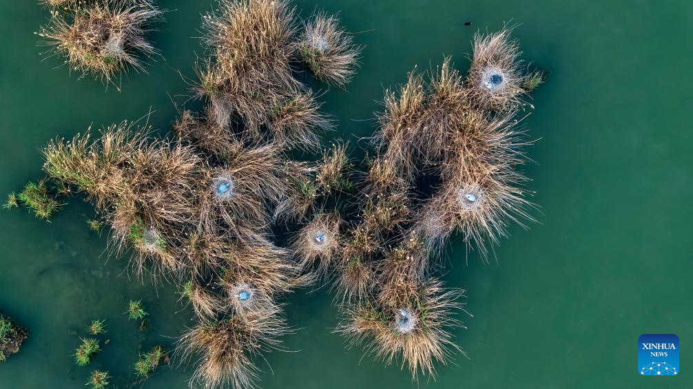 YINCHUAN, 19 abril, 2026 (Xinhua) -- Vista aérea tomada con un dron el 17 de abril de 2026 de nidos de garzas en el punto escénico de Shahu, en Shizuishan, en la región autónoma hui de Ningxia, en el noroeste de China. (Xinhua/Wang Peng)