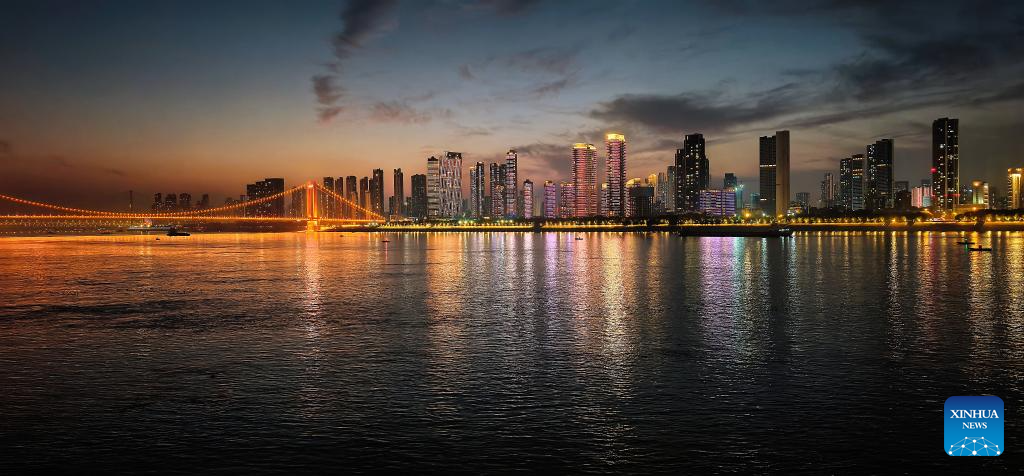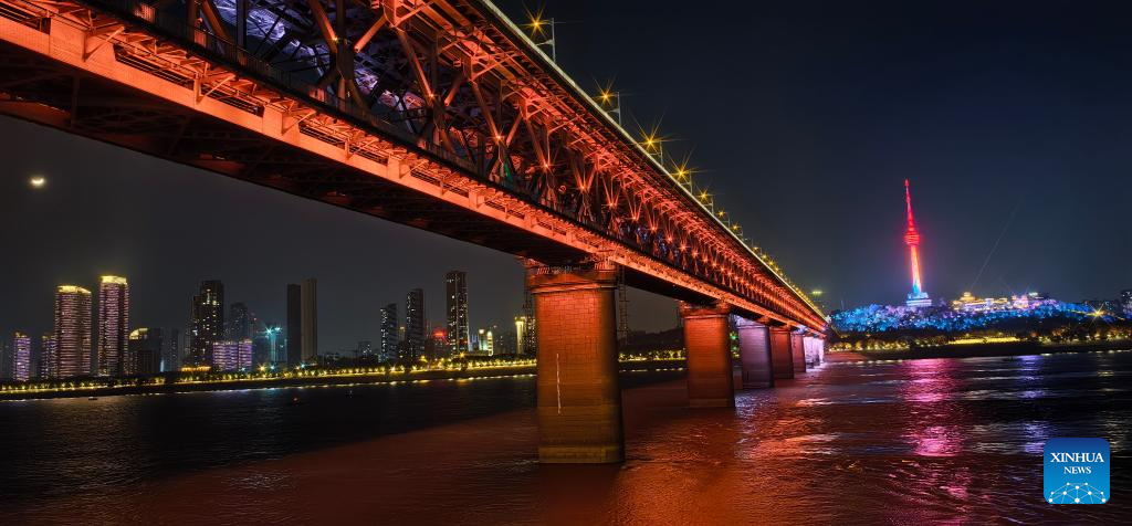 WUHAN, 25 abril, 2026 (Xinhua) -- Imagen del 25 de diciembre de 2025 del paisaje nocturno del puente sobre el río Yangtse, en Wuhan, en la provincia de Hubei, en el centro de China. Actualmente, cerca de 50 puentes han sido terminados o están en construcción a lo largo del tramo de Hubei del río Yangtse. Los servicios de ferry eran el único medio de transporte para cruzar el río antes de octubre de 1957 cuando se puso en funcionamiento el puente carretero y ferroviario de Wuhan, el primero de su tipo en el río Yangtse. Ahora, lo que antes era un cruce de río que consumía mucho tiempo, se puede completar en tan solo diez minutos, lo que facilita los desplazamientos diarios de las personas y allana el camino para un desarrollo regional coordinado. (Xinhua/Shen Hongbing)