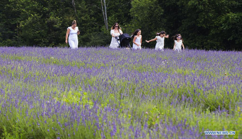 MILTON, 23 julio, 2021 (Xinhua) -- Personas visitan la Granja de Lavanda Terre Bleu, en Milton, Ontario, Canadá, el 23 de julio de 2021. (Xinhua/Zou Zheng)