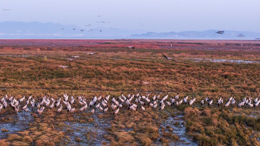 Reserva natural ha sido testigo de la temporada alta de migración de grullas de cuello negro en Guizhou