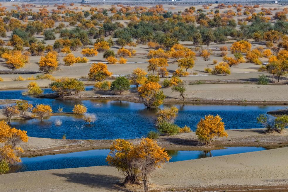 Paisaje de bosques de populus euphratica en el distrito de Hotan, Xinjiang
